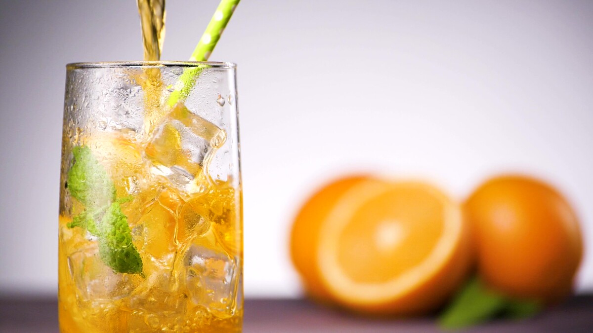 Видеосъемка напитка в прозрачном стакане